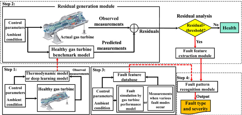 本文结合基于热力模型和基于人工智能的气路诊断方法的两者优点,首次提出基于机器学习的重型燃气轮机全通流部件气路故障方法,主要贡献如下:(1)基于已建立的高精度燃气轮机热力模型,通过全通流部件的故障模拟,全面建立了通流部件内在气路故障模式与外在气路可测参数故障征兆的关系规则库;(2)通过重型燃气轮机全通流部件的故障模式与故障征兆的知识挖掘,从传统非线性气路故障诊断原理出发,建立了适用于机器学习框架的重型燃气轮机全通流部件气路故障诊断数学模型;(3)首次提出了基于机器学习的重型燃气轮机全通流部件性能量化诊断方法,所提出的方法可用于对燃气轮机机组并网后全工况(从最小IGV开度负荷至IGV全开基本负荷)全通流部件(进气系统、压气机、燃烧室、透平和排气系统)的不同故障类型和故障严重程度进行全面诊断。