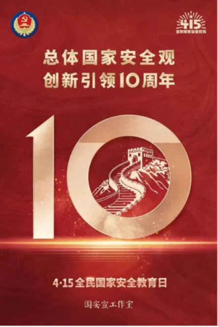 今年4月15日是第九个全民国家安全教育日。今年的主题是:总体国家安全观,创新引领十周年。