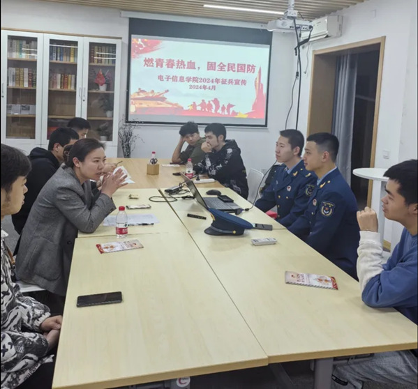 随后,史老师详细解读了征兵政策、报名流程以及注意事项,提醒员工树立正确的入伍动机,认真规范填报各类信息,并且培养健康的生活方式,加强体能训练,为适应部队生活建立良好基础。会上,史老师与两位退伍员工对与会同学提出的关于军旅生活、学分认证、体检要求、就业落户等方面的困惑,进行了一一解答,并鼓励同学们坚定信心,勇于挑战。