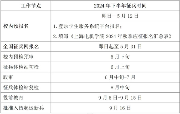 根据中央军委政策制度改革总体部署,自2020年起,将实施“一年两次征兵”改革,2024年下半年征兵初步时间安排如下:
