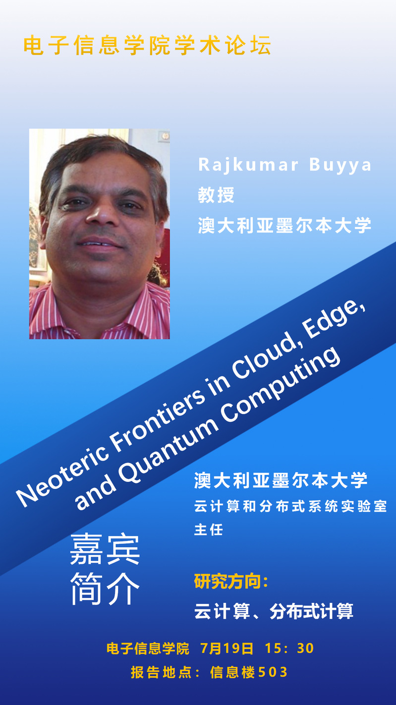 学术报告题目:Neoteric Frontiers in Cloud, Edge, and Quantum Computing(云,边缘和量子计算的最新前沿进展)