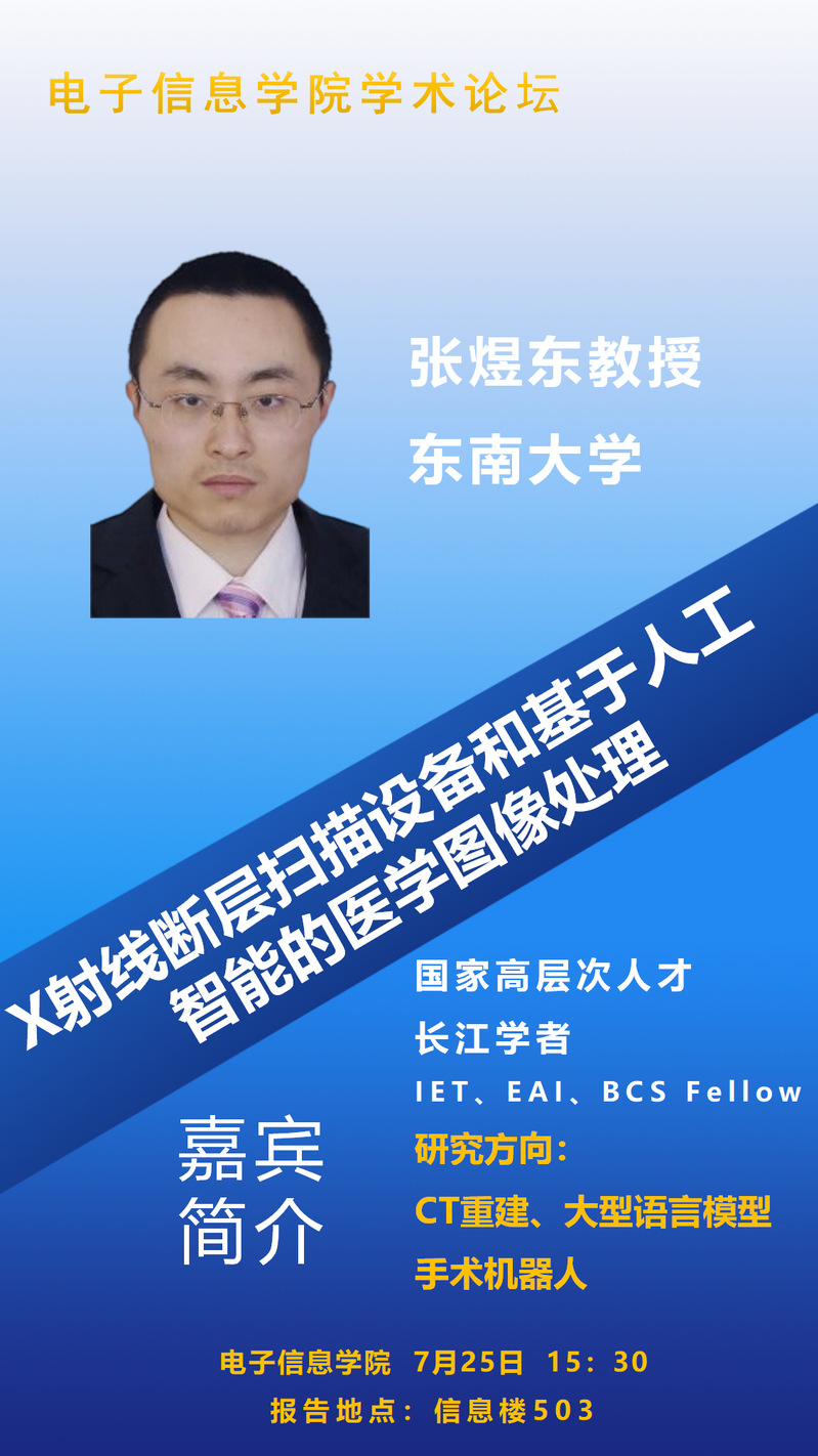 学术报告题目:X-ray Tomography Equipment and AI-based Medical Image Processing