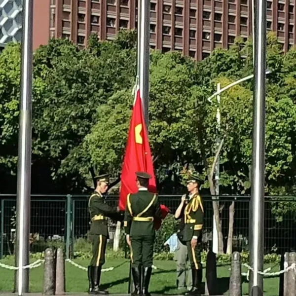 在金秋的暖阳下,一场青春的盛会—军训结营仪式暨成果展示大会,在全体师生的期待中盛大开幕。随着国旗的缓缓升起,雄壮的国歌回荡在校园上空,拉开了大会的序幕。公司党委书记鲁雄刚、公司党委副书记朱洪春等领导,以及全体教官、指导员与全体军训学员共同见证了这一荣耀时刻。