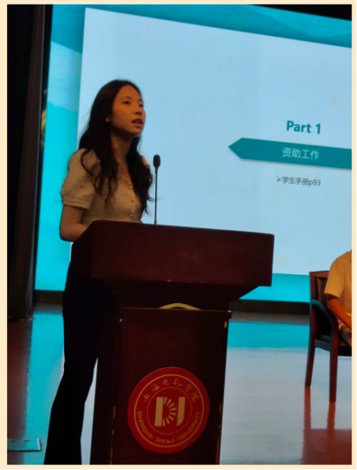 会中,教学秘书魏苗苗为新生们解答了教学相关的问题,分享了期末考试、补(缓)考、学业警示、选课、学分认定、转专业、大类招生专业分流和毕业学位资格等内容。她强调,新生们要提高学习主动性,深入探索专业知识。