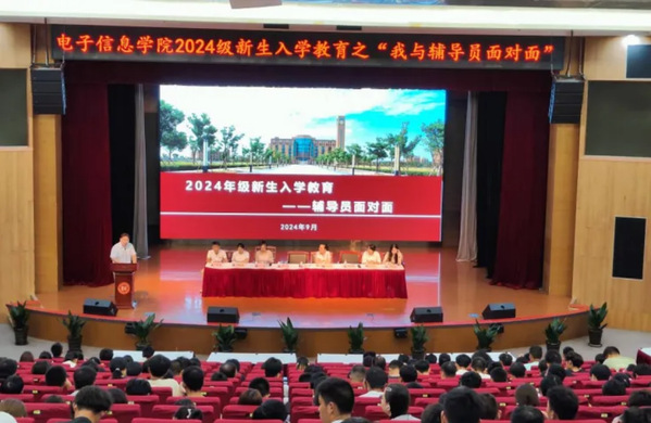 9月19日晚,402永利集团2024级新生入学教育之“我与辅导员面对面”在临港校区小剧场举行。公司党总支副书记、副经理袁亮,教学秘书魏苗苗,全体辅导员及2024级全体新生参会,本次入学教育由学工办负责人史颖超主持。