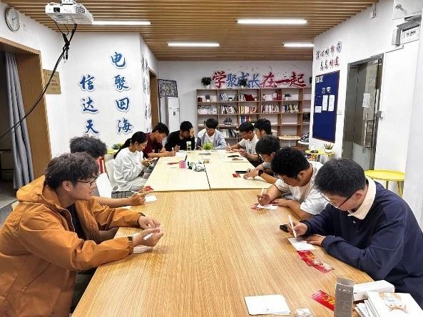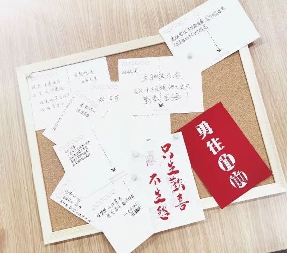 观影结束后,同学们提笔在明信片上写下对祖国的美好祝愿,每一张明信片都寄托了大家对祖国的深厚感情。所有被展示在软木板上的明信片都象征着同学们对祖国繁荣昌盛的共同期盼,通过本次活动,我们不仅重温了历史,也激发了更多爱国情怀。