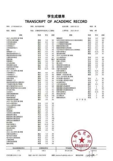 同时,他既注重理论知识的掌握,也不忽视实践能力的培养,加入计算机编程和数据分析兴趣小组,积极参与实验、编程等实践活动,力求将所学知识应用于实际问题。大学三年,他的学分绩点名列前茅,荣获多次校级奖学金,成为同学们学习的榜样。