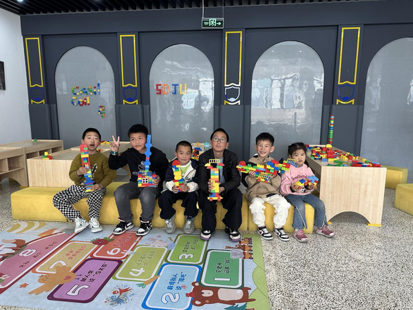 活动另设有拼积木环节,孩子们全情投入,创造力与想象力瞬间迸发。他们用积木搭建出东方明珠、未来列车等创意作品,相互分享灵感,携手合作。他们以手中积木为画笔,描绘出对祖国繁荣未来的憧憬,每一块积木的堆叠都饱含着对祖国深深的热爱 。