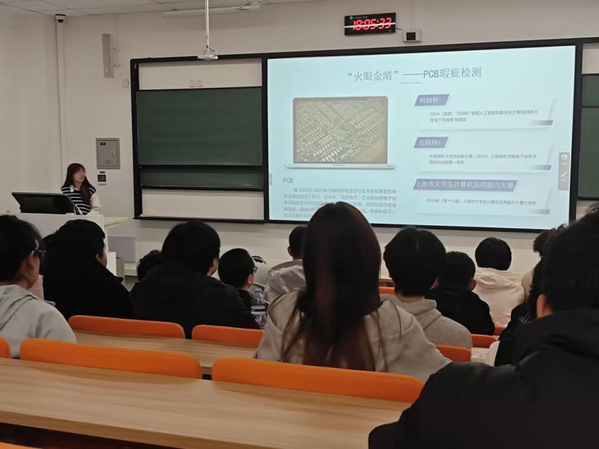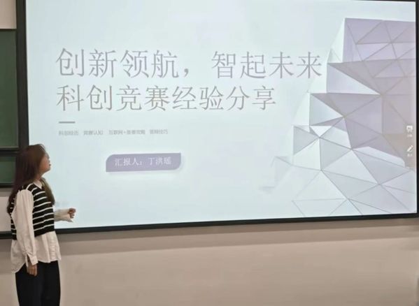 分享会上,丁洪瑶结合自身参与“互联网 +”竞赛的经历,深入剖析了赛事的参赛流程、评审标准以及创新亮点,让同学们对竞赛有了更为直观和清晰的认识。她告诉同学们,参与科创竞赛并非仅仅是知识与技能的简单比拼,更是培养创新思维、提升团队协作能力的绝佳途径。她认为竞赛为同学们搭建了一个跳出常规学习框架、将理论知识应用于实际操作的优质平台,有助于同学们拓宽视野,锻炼解决实际问题的能力。