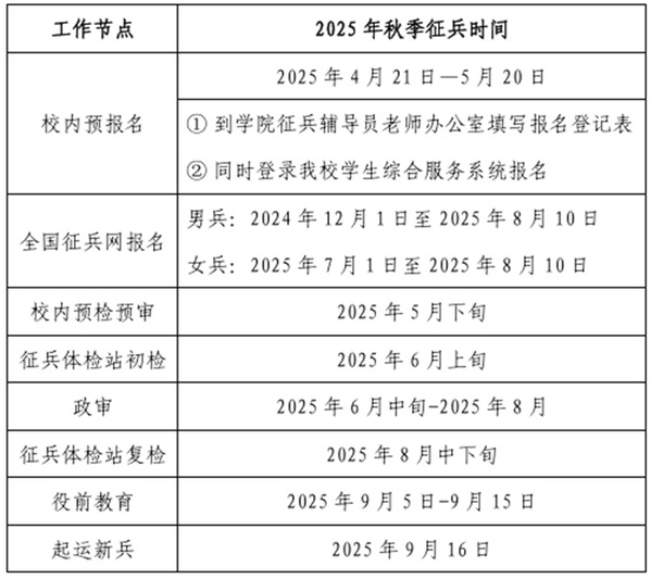 特别说明:2025届本科应届毕业生报名青年,确保入伍前修满毕业要求规定的全部学分。