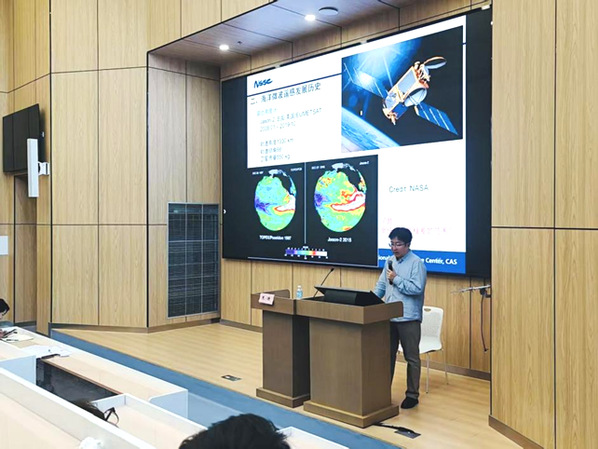 随后,朱迪老师详细梳理了海洋微波遥感在国内外的发展历程,并分享了自己参与研制的中法海洋卫星系统的相关情况,包括卫星的研制过程以及在轨运行状态。这些一手信息极大地激发了同学们的兴趣,现场气氛热烈。