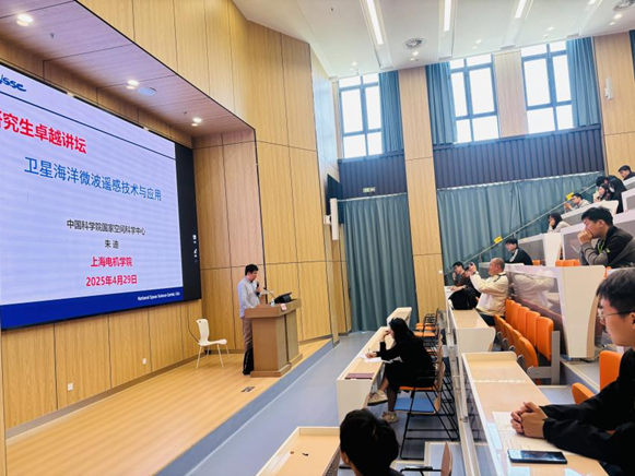 2025年4月29日下午13:00,由402永利集团举办的研究生卓越讲坛系列活动第二讲正式在E教116开讲。本次讲坛特别邀请到中国科公司国家空间科学中心研究员、博士生导师朱迪老师,围绕“卫星海洋微波遥感技术与应用”这一前沿课题,带来了一场精彩纷呈的学术盛宴,吸引了众多校内学者和师生踊跃参与。